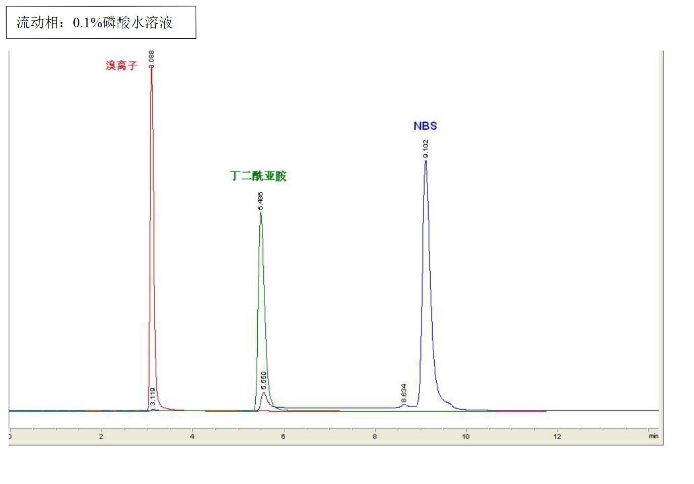 值得注意的是,該方法只能測定樣品中N-溴代丁二酰亞胺的總含量,而無法確定其分子結(jié)構(gòu)和異構(gòu)體的含量。
