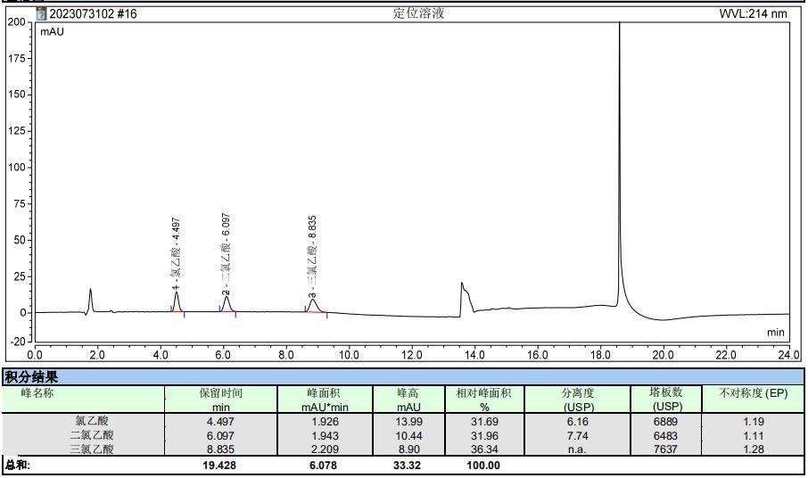 基因毒性雜質(zhì)(氯乙酸、二氯乙酸、三氯乙酸)RPLC-UV 法測定