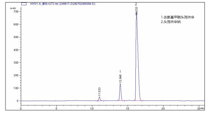 App ID: FLM-T240006 Titank C8 柱對頭孢呋辛鈉有關(guān)物質(zhì)的檢測 方法:《中國藥典》2020 版 一部 色譜柱:Titank C8 5μ 250*4.6mm (貨號:FMG-5556-EONU) 流速:1.5 mL/min 檢測:UV273nm 流動相:
