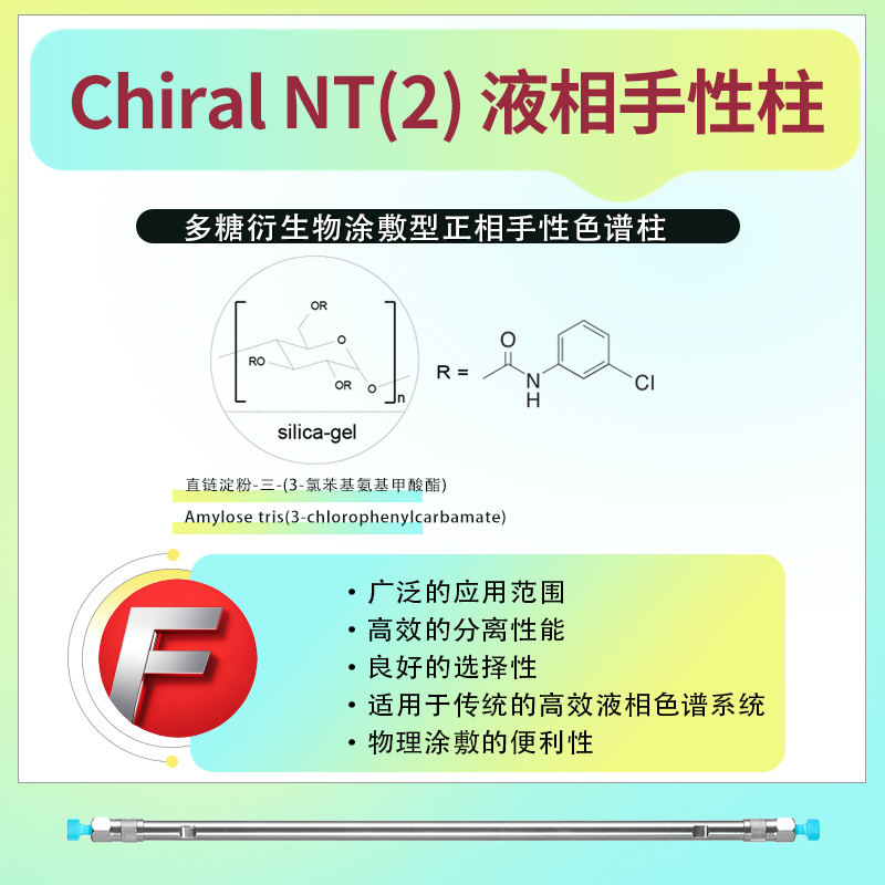 Chiral NT(2)液相手性色譜柱的核心在于其涂敷型固定相,該固定相由直鏈淀粉-三-(3-氯苯基氨基甲酸酯)制成,這種材料能夠高效地對映異構體進行分離。該色譜柱設計用于正相液相色譜系統,為手性化合物的分離提供了有力支持。