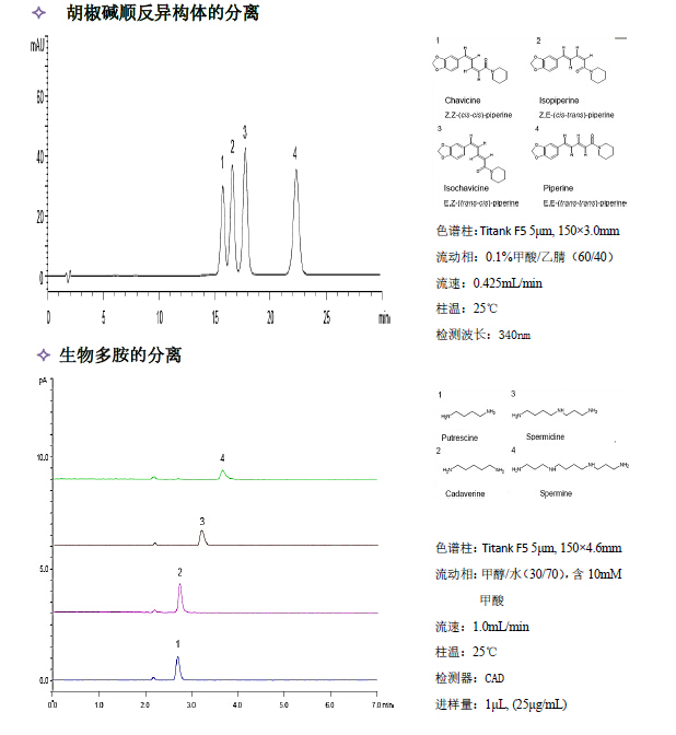 上圖顯示,對易于引起吸附、拖尾及易產(chǎn)生再現(xiàn)性問題的堿性化合物和配位化合物,Titank 系列能獲得穩(wěn)定的重現(xiàn)性。